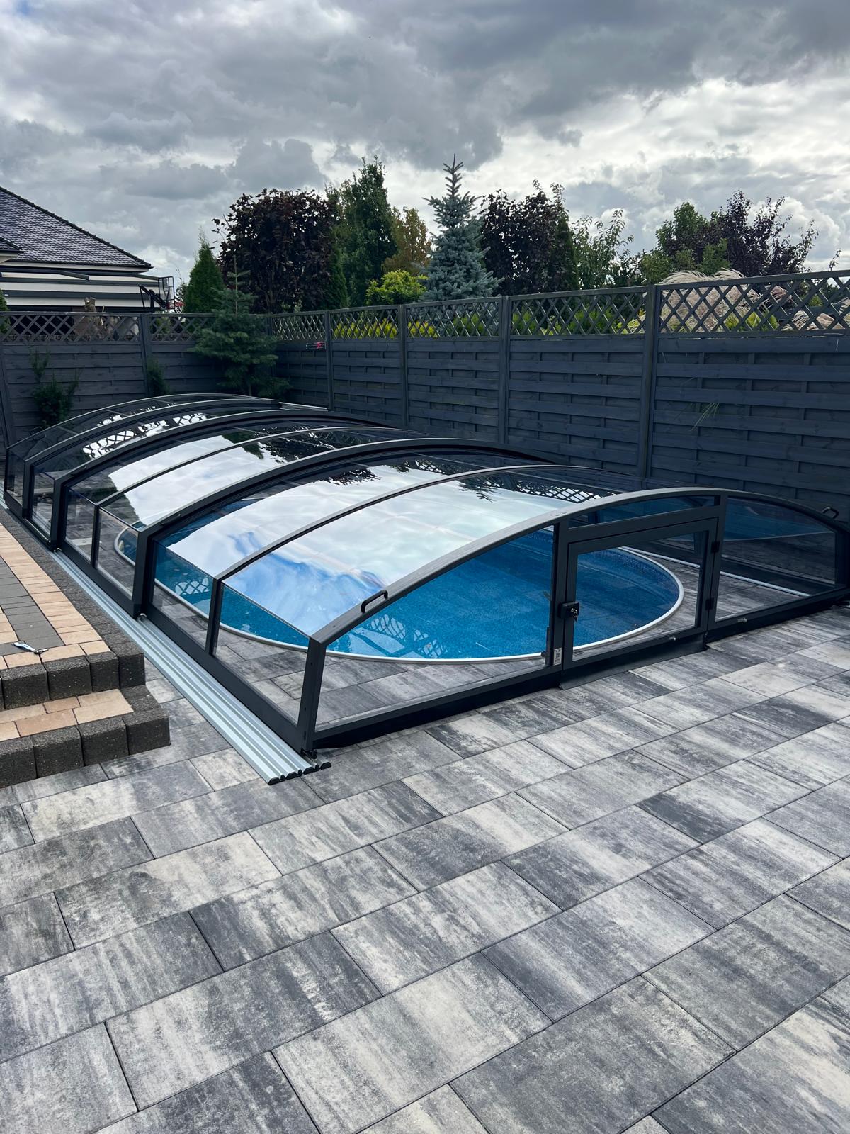 Model zadaszenia Aluna® Admiral II dedykowany jest dla tych Klientów, którzy chcą pływać przy zamkniętym zadaszeniu, pragną posiadać nowoczesną wizualnie konstrukcję i jednocześnie nie chcą ograniczać sobie widoku w ogrodzie wysokimi rozwiązaniami.